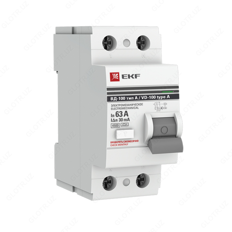 UZO 2R 63A 30mA AC tipidagi el-mech VD-100 EKF